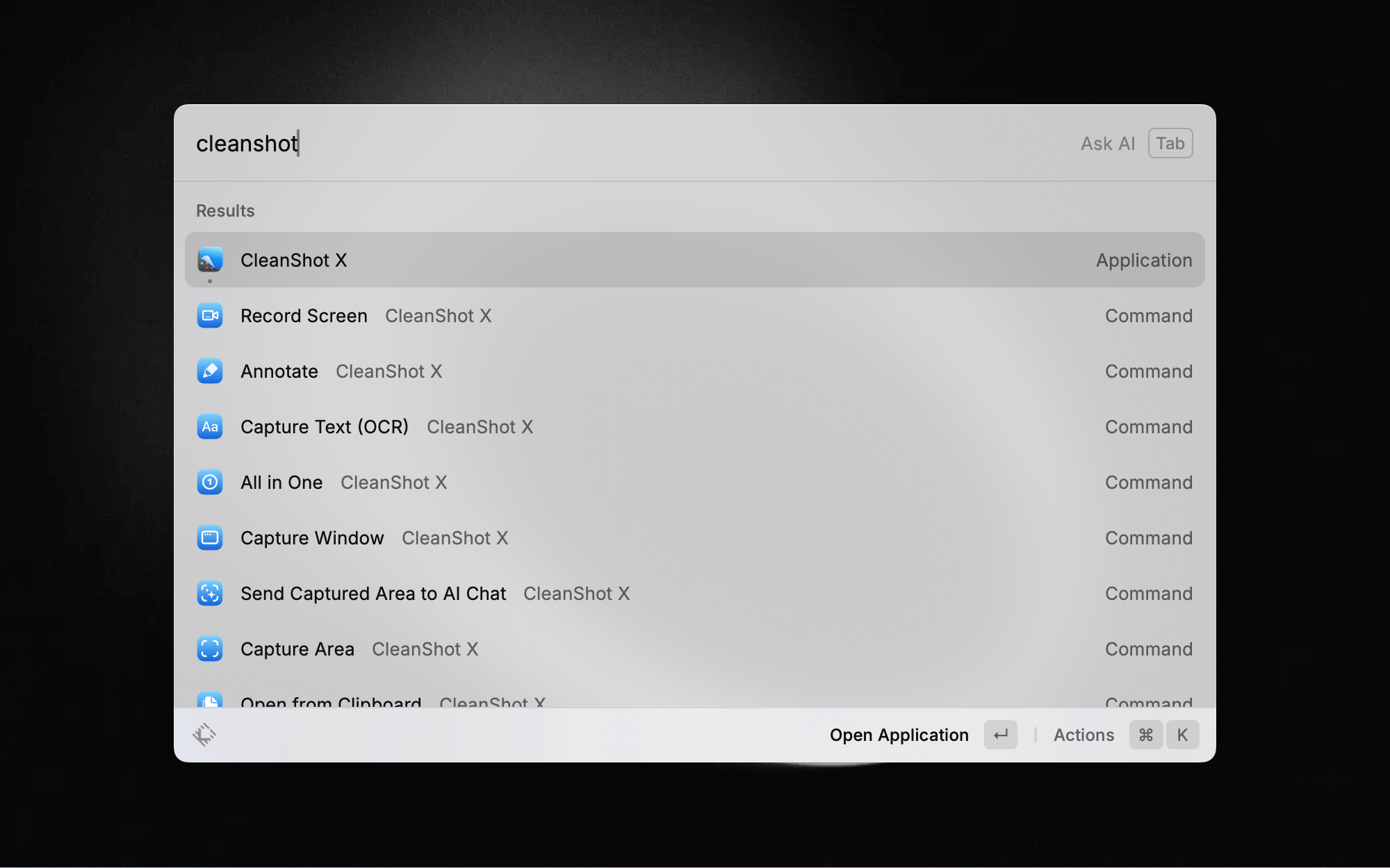 We love CleanShot X (who doesn't?), and we've made the integration even better. There are two ways to use CleanShot X with Raycast: